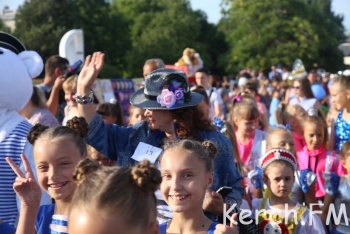 Дальше участники парада отправились на сцену. В перерыве между выступлениями вокалистов из Керчи и приглашённых гостей, коллективы детских садов, семьи и танцевальные коллективы рассказали о себе всем присутствующим.