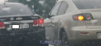 И, хотя в ДТП машины получили незначительные повреждения - царапины на дверях, авария собрала "тянучку" на несколько сот метров. Машины в очереди стоят вгору и, трогаясь с места, буксуют.
