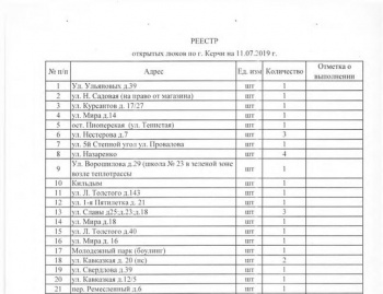 Администрация Керчи опубликовала реестр первых адресов, где будут установлены крышки люков керченским филиалом ГУП РК "Вода Крыма", - передает Керчь.ФМ.