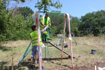В планах у подрядчика в пятницу закончить установку этой игровой зоны и уже в субботу приступить к аналогичным работам по 1-му Портовому переулку, 6А.
