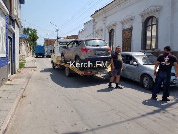 В Керчи эвакуатор въехал в припаркованную легковушку