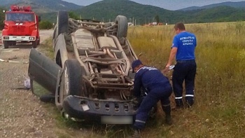 По прибытии огнеборцы обнаружили, что водитель автомобиля «Mercedes-Benz» не справился с управлением и допустил опрокидывание транспортного средства.