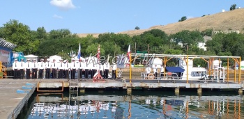 Отмечать праздник начали с возложения цветов. После отправились на водную станцию, где прошло награждение и поздравления.
