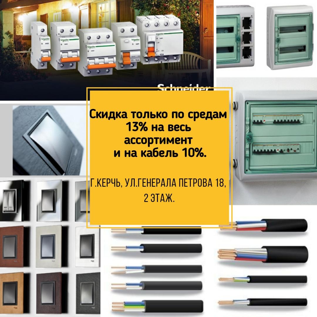 Каждую среду скидки на всю продукцию 13%, на кабель - 10% в магазине «Электрострой»!