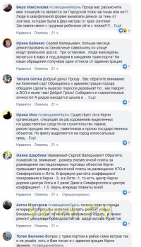 Выделены в отдельный блок вопросы бездомных собак, особенно, по мнению обратившихся, их много в районе автовокзала. Также не остались без внимания керченские парки, в том числе «откусанная от них территория с незаконной застройкой, «подсунутый» Генплан с урезанными парками, разбитая набережная, «располовиненный» стадион 12 школы с недостроенным детским садиком.