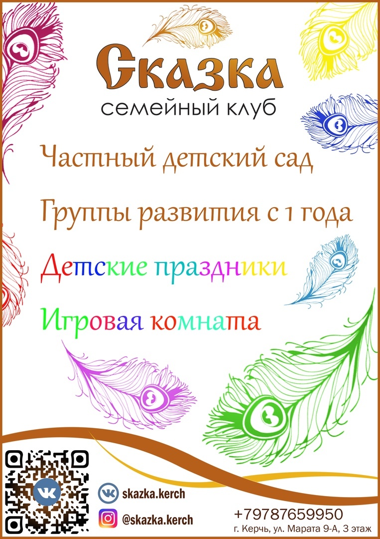 Детский сад "Сказка" - это мини-группы, СВОЯ КУХНЯ, ежедневные занятия, английский язык, музыкальное и физическое развитие, комфортная климатическая среда, консультации врача-педиатра, внимательное и бережное отношение к детям. Детский сад "Сказка" - это укрепление здоровья, серьезные знания и безграничная любовь к детям.