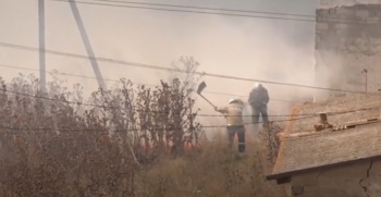 В тушении пожара, помимо прибывшей из Ленино пожарной машины, задействованы тракторы с наполненными водой 3- и 6-кубометровыми бочками.