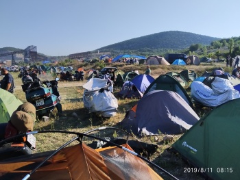 Утром колонна мотоциклистов отправилась на мотопробег, а кто-то остался ждать выступления и мероприятия на второй день фестиваля.