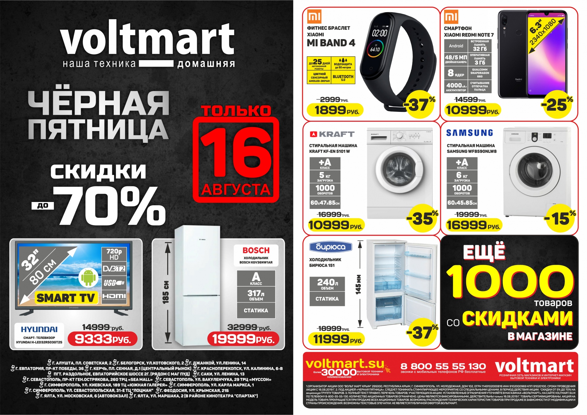 Черная Пятница в магазине ВОЛЬТМАРТ по адресу: г.Керчь, ул. Сенная площадь, 1 (центральный рынок). Только 16 августа СКИДКИ до 70%.