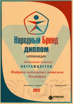 Компания, занявшая лидирующую позицию в Керчи в сфере натяжных потолков, по мнению керчан Народный бренд 2017 *