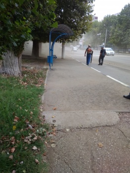 «Вот так «подметают» остановки в городе. Вместо того, чтобы мусор собирать в пакеты и вывозить, его просто сдувают с остановки. Тут же образуется облако пыли и всех идущих на остановку «искупало». Но мусор никуда не делся, он оседает на прилежащую территорию. То есть, гоняем мусор, грязь, пыль с места на место. Какой «мудрый» рационализатор придумал так убирать мусор в городе? Я такое уже видела примерно два года назад на ул.Пирогова около стоматологии. Теперь вот на ул. Г.Петрова остановки Промбаза с обеих сторон.