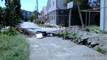«Водоканалом вырыта яма на 10м3. Этим устранение порыва и закончилось. В итоге, из-за ямы движение транспорта по ул. Шевякова перекрыто, сотни, если не тысячи кубов питьевой воды ежедневно утекают в грунт. В то время, когда в Крыму остро стоит вопрос с пресной водой, "Вода Крыма" допускает огромные потери этого стратегического ресурса. Что это, преступная халатность или саботаж?», - написал керчанин.