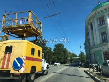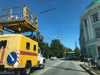 В Керчи ко Дню города, который перенесли из-за выборов на следующие выходные, начались работы по украшению города, - передает Керчь.ФМ. Так, рабочие с помощью спецтехники украшают улицы праздничной атрибутикой над дорогами. На Кирова повесили флажки в цветах флагов.