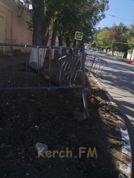 Дорожный знак, который показывает разрешенное направление движения, до сих пор лежит на земле. С инцидента в субботу, когда помяли забор и снесли столб с дорожным знаком, до них нет никому дела, - передает Керчь.ФМ.