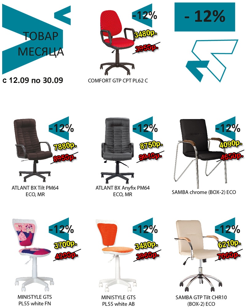 С 12 по 30 сентября 2019г. покупайте современные модели стульев и кресел по сниженным ценам - со скидками до 12% в мебельном магазине kerchmebel.ru