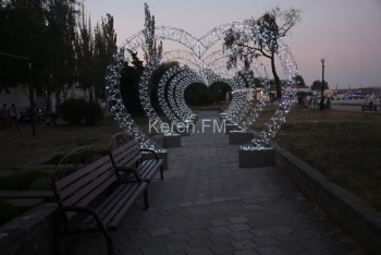 В Керчи на городской набережной сделали аллею влюбленных. На железные каркасы в виде сердец установили гирлянды. По вечерам они будут светиться, - передает Керчь.ФМ.