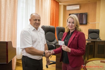Народные избранники, которых граждане Керчи наделили полномочиями отстаивать их права, получили мандаты депутатов Керченского городского совета II созыва из рук председателя территориальной избирательной комиссии города Керчи Святослава Брусакова.
