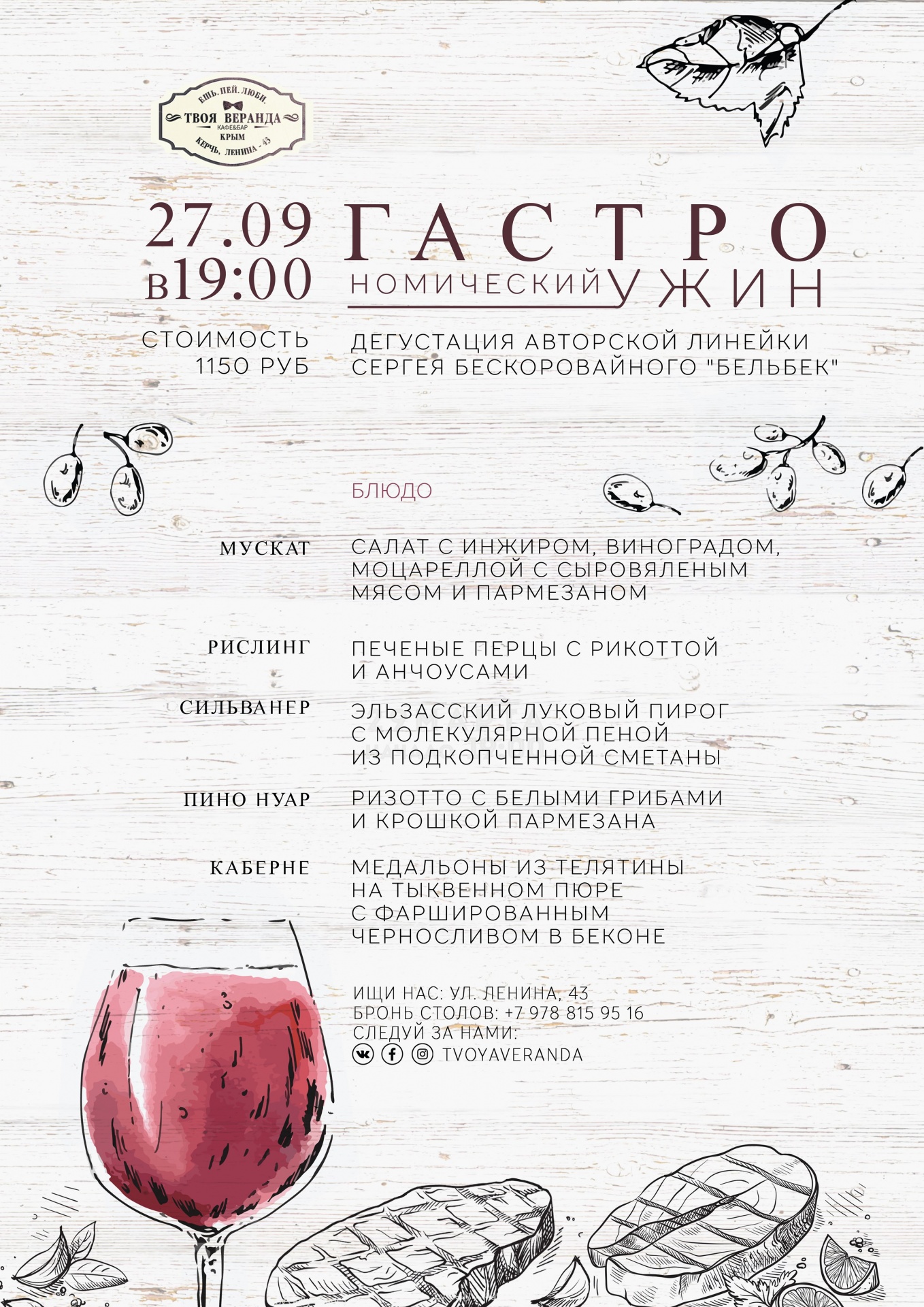 Основное: 27 сентября Твоя Веранда приготовит незабываемый вечер для вкусного отдыха.