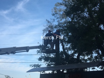 В центре Керчи пилят очередное дерево. Стоит отметить, что оно не сухое. Керчане возмущены такими работами.