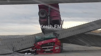 На трассе «Таврида» грузовик с поднятым кузовом снес путепровод