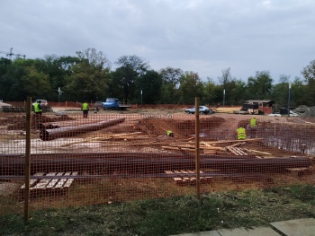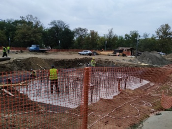 По информации Сергея Бороздина, в активной фазе работы по строительству сухого светомузыкального фонтана: уже выполнено бетонирование основания, проложены трубы. Всего на данном этапе выполнено порядка 10% работ. Подрядная организация устанавливает арматуру для монтажа декоративной копии Крымского моста. Другие рабочие ведут подготовительные работы для прокладки кабельных линий светодиодных опор освещения. Их в реконструируемой части парка предусмотрено 134. Кроме того, выполняются работы по благоустройству пешеходных дорожек. Всего в парковой зоне будет уложено около 6 тыс. кв. м. тротуарной плитки.