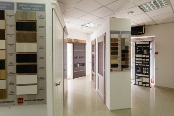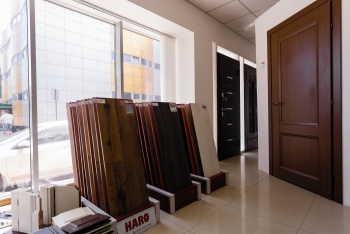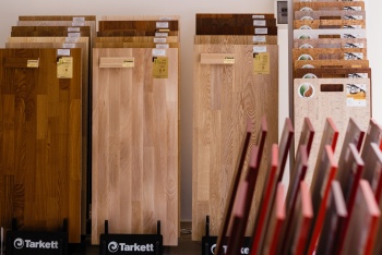 Также в магазине представлена выставка ламината Pergo, Haro, паркета PolarWood, пробковые напольные покрытия, виниловое покрытие Pergo
