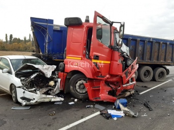 По предварительным данным, водитель грузовика по направлению в г. Керчь по непонятным причинам выехал на встречную полосу, где совершил столкновение с автомобилями «Шкода Октавиа», «Киа», «Форд Фокус» и еще одним грузовиком.
