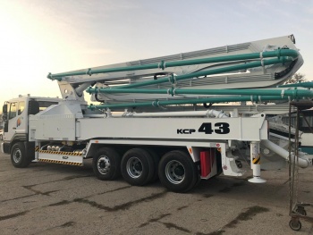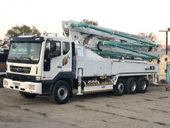 Организация предлагает в почасовую аренду автобетононасос на базе Daewoo Novus с рекордной для Керчи длиной стрелы 43 метра!