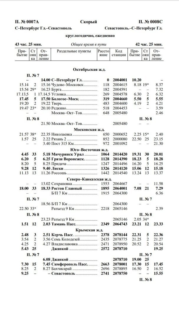 Также, путь из Санкт-Петербурга в Севастополь займет 42 часа 25 минут. Поезд №7 будет отправляться в 14:00, а прибывать в Севастополь в 9:25 часов через двое суток.