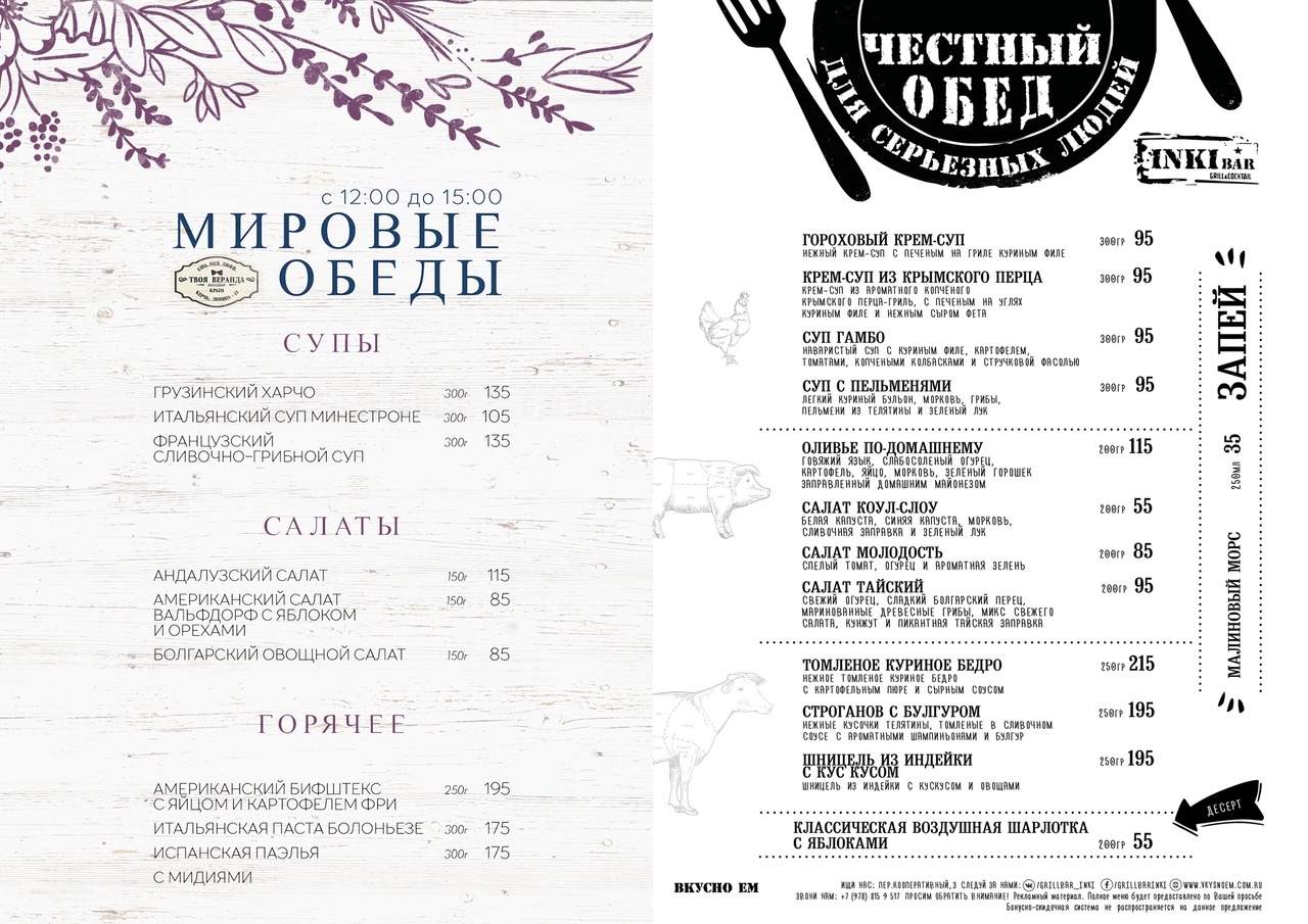 Гриль-бар "INKI" и кафе "Твоя Веранда" приглашают тебя занять любимое место, выдохнуть, посмотреть в окно и поесть!