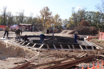 На сегодняшний день на месте фонтана и инсталляции только проложили коммуникации и установили «мостоарку», а в парке обрезали на некоторых участках деревья, уложили плиткой третью часть дорожек и подвели кабели к будущим столбам освещения. Работы там ведутся, но только со сроками опять вышло нехорошо - срок завершения работ 30 октября прошел в прошлый четверг, а работы еще только "начать и кончить".