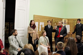 В течение беседы музейные актеры исполняли музыкальные и поэтические произведения конца XIX - начала XX вв., что помогло гостям погрузиться в чарующую атмосферу Серебряного века.