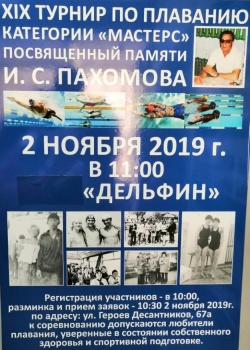 В первых числах ноября 2019 года в городе-герое Новороссийске, в бассейне ЦСП «Дельфин» состоялся традиционный уже XIХ Международный турнир по плаванию в категории «Мастерс», посвящённый памяти И.С. Пахомова, - передает Керчь.ФМ.