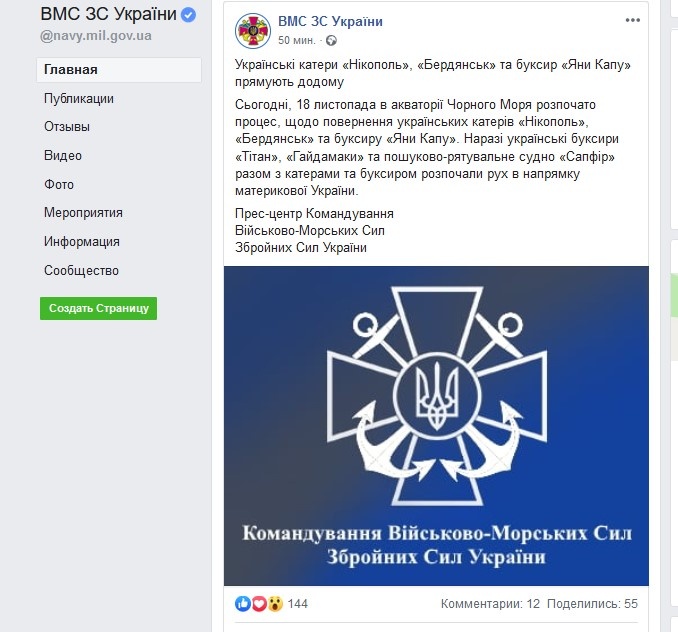 Задержанные год назад в Керченском проливе украинские корабли возвращаются в Украину. Об этом сообщает пресс-служба ВМС ВС Украины в соцсети, - передает Керчь.ФМ.