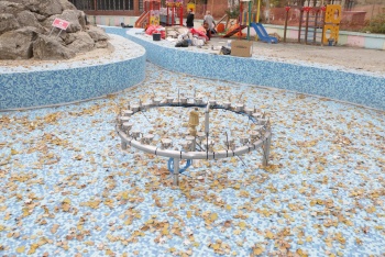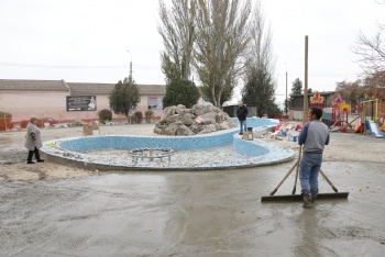 Сейчас формируется армированная стяжка для дальнейшей укладки прорезиненного покрытия. После по территории будут расставлены детские игровые городки.