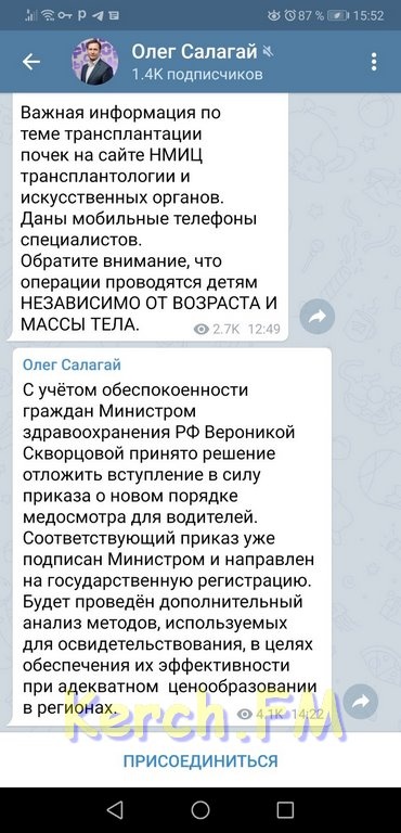 «С учётом обеспокоенности граждан Министром здравоохранения РФ Вероникой Скворцовой принято решение отложить вступление в силу приказа о новом порядке медосмотра для водителей.