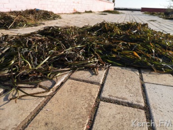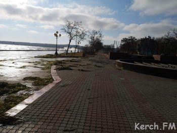 Керченская набережная наполовину затоплена водой. Вода доходит практически до фонтана, везде разбросана морская трава, - передает Керчь.ФМ.