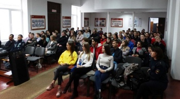 Открыла мероприятие заместитель начальника отдела по работе с личным составом Управления МВД России по г. Керчи Елена Берберова. Она познакомила ребят со спецификой службы в органах внутренних дел, рассказала о подразделениях, которые входят в структуру МВД России. После чего будущим выпускникам сотрудники полиции продемонстрировали видеоролик о Крымском филиале Краснодарского Университета МВД России, который готовит специалистов правоохранительной направленности.