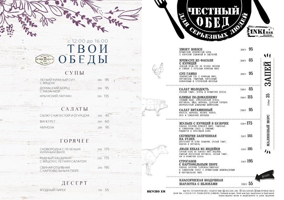 Честные цены на обед в Гриль-бар «ИНКИ» и кафе «Твоя Веранда»!