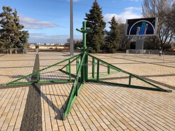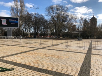 В Керчи 2 декабря началась активная подготовка к новогодним праздникам. На площади установили основание главной елки города. Также сюда завезли ограждения, украшали живые ели гирляндами.