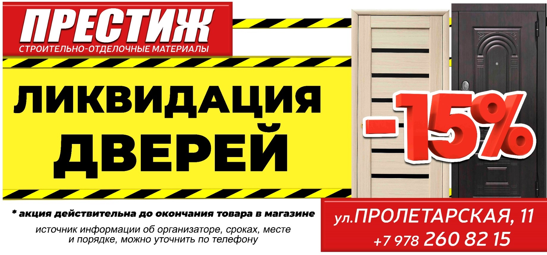 ПОЛНАЯ ЛИКВИДАЦИЯ ДВЕРЕЙ ! СКИДКА - 15% !