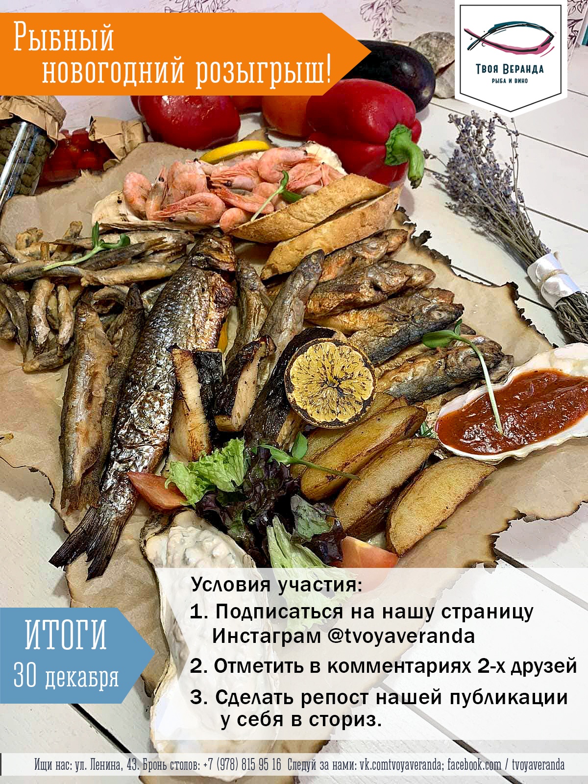 «Твоя Веранда» считает, что рыбы много не бывает! Мы дарим Большой черноморский рыбный сет в компании с крымским белым сухим!