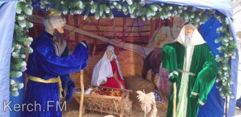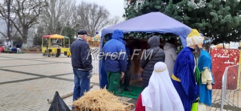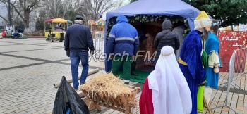 В Керчи 6 января начали подготовку к празднованию Рождества. Как передает корреспондент Керчь.ФМ, на площади Ленина рабочие устанавливали вертеп. Пока фигуры выгружали и ставили палатку, появились желающие сфотографироваться.