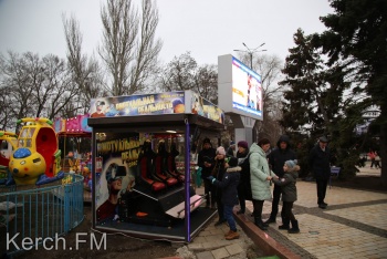 На площади Ленина в Керчи работает «Новогодний городок», - передает Керчь.ФМ. На улице расположились сувенирные лавки, аттракционы, домики с едой. Очередь выстроилась за хот-догами и попкорном. Также, прямо на площади жарили шашлыки - цена 100-120 за 100 грамм.