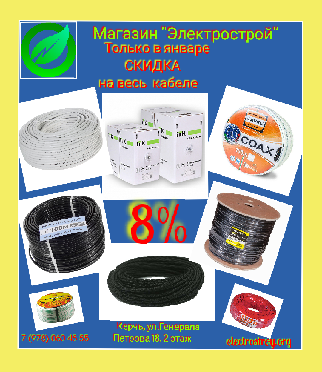 Не упусти свою скидку на весь кабель в магазине «Электрострой»!