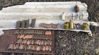 В ведомстве отметили, что пограничники совместно с военнослужащими, сотрудниками Росгвардии, МВД проведен осмотр места. В его ходе выявлено более 200 патронов калибром 7, 62 мм, граната «Ф-1», три гранаты «РГ-42» и запалы к ним, четыре капсюль-детонатора, а также имитационный пороховой взрывпакет.