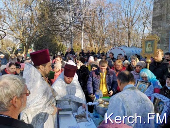 Сегодня к церкви Иоанна Предтечи, чтобы освятить воду, пришли сотни керчан. Как и в прошлом году, во дворе стояла водовозная машина и все желающие могли набрать оттуда освященную воду.