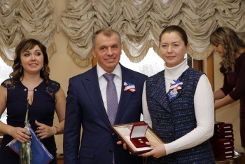 Председатель Госсовета РК Владимир Константинов вручил премию в номинации «Изобразительное искусство « керчанке Калюжной Анастасии - художнику, живописцу, члену Крымского республиканского отделения Всероссийской творческой общественной организации "Союз художников России", за серию работ "Посвящение Крыму".