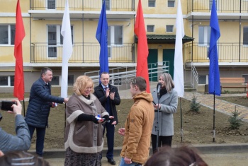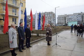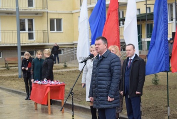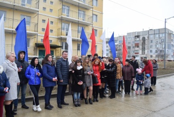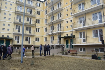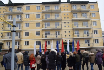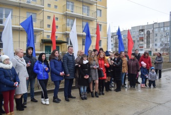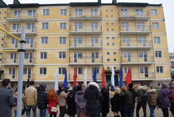 Это первые квартиры, которые город закупил в новостройке. После выручения присутствующие сделали общее фото и отправились смотреть квартиры внутри