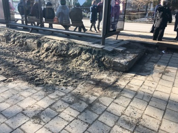 Керчне не понимают, сколько еще времени потребуется, чтобы привести в порядок небольшую территорию у остановки.